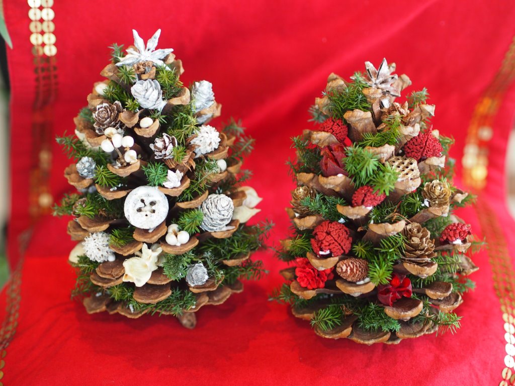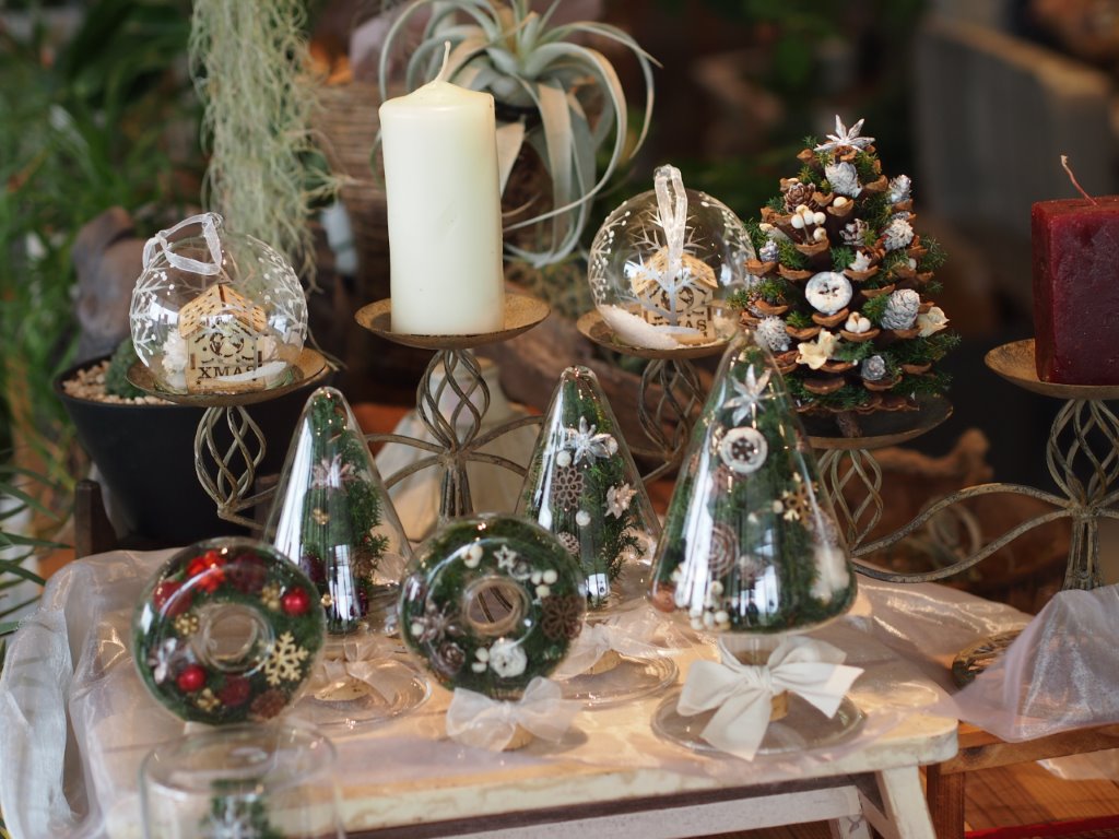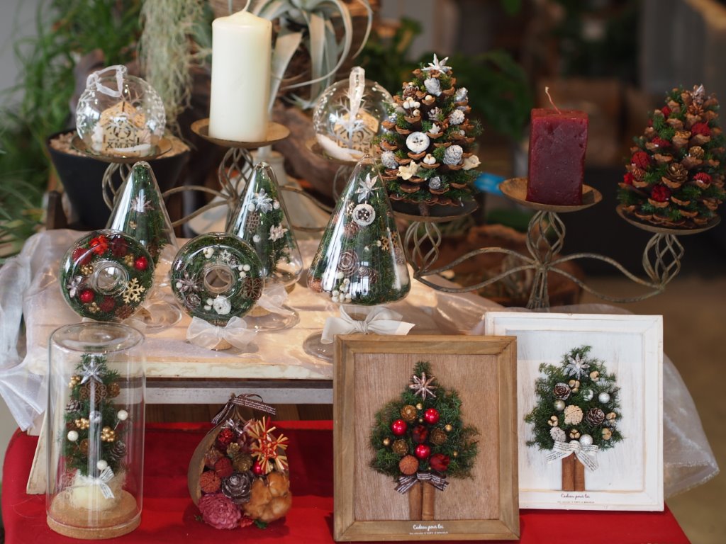 プリザーブドフラワーのヒムロスギや木のみを使って色々作ってみました。