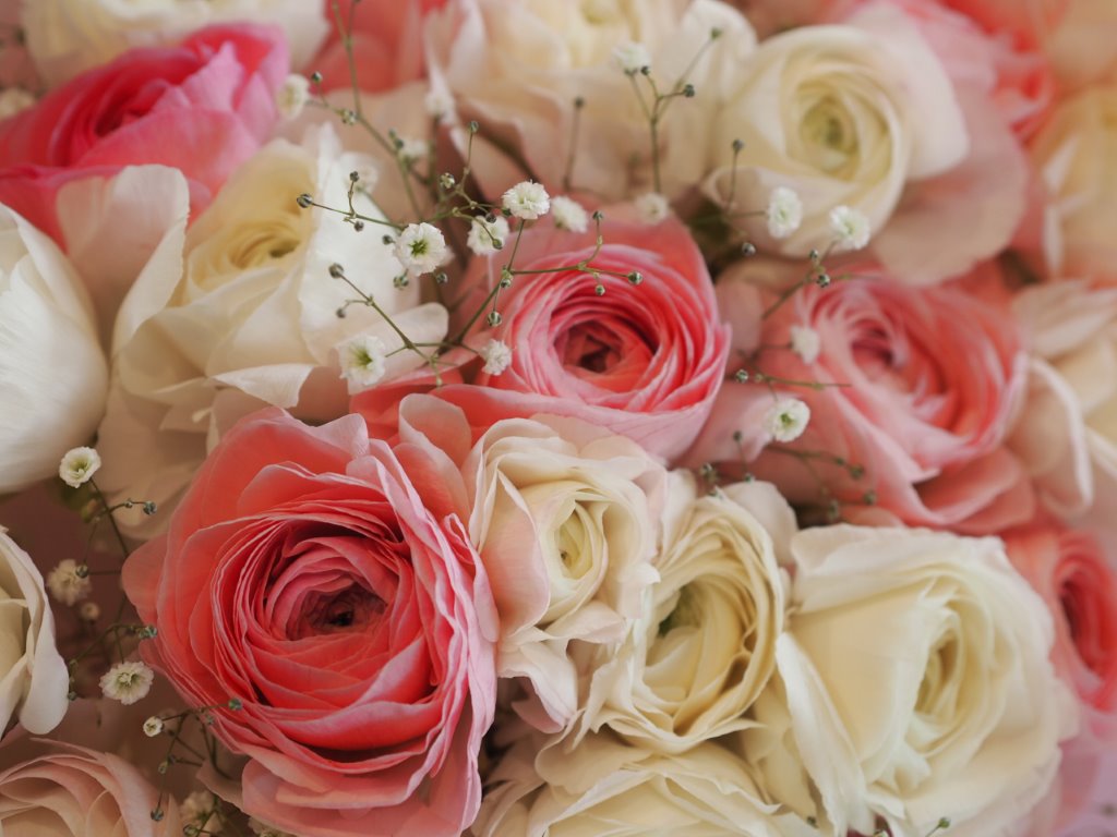 まるくて可愛いラナンキュラス。バラのような豪華さもあって、とても魅力的なお花です。