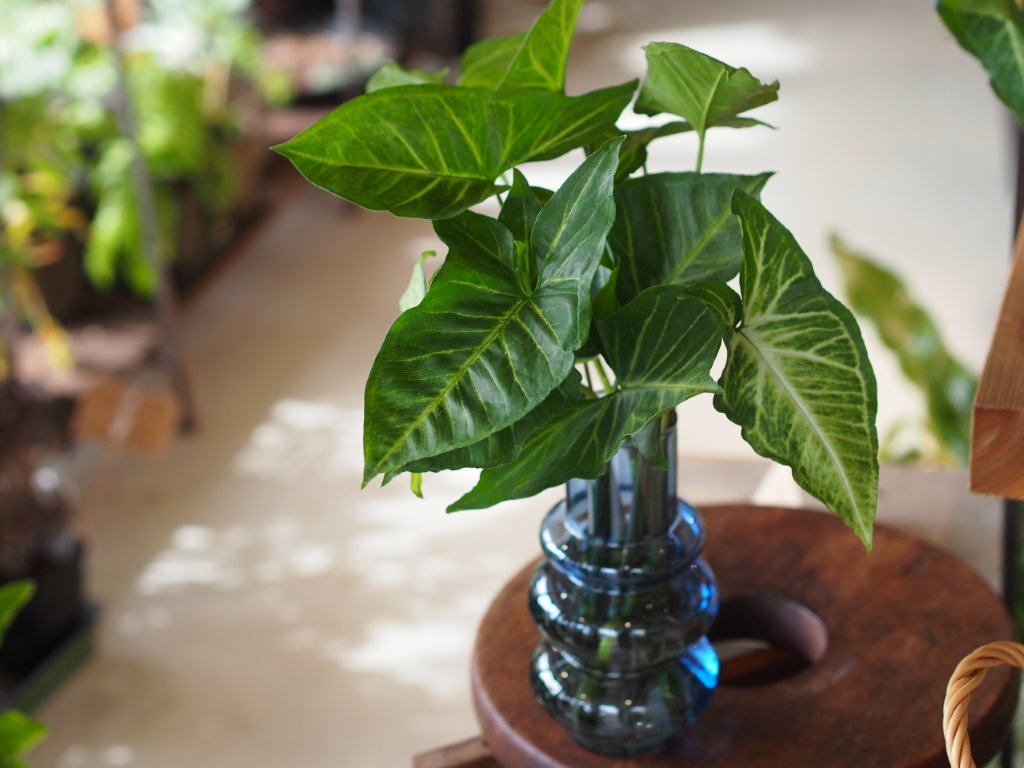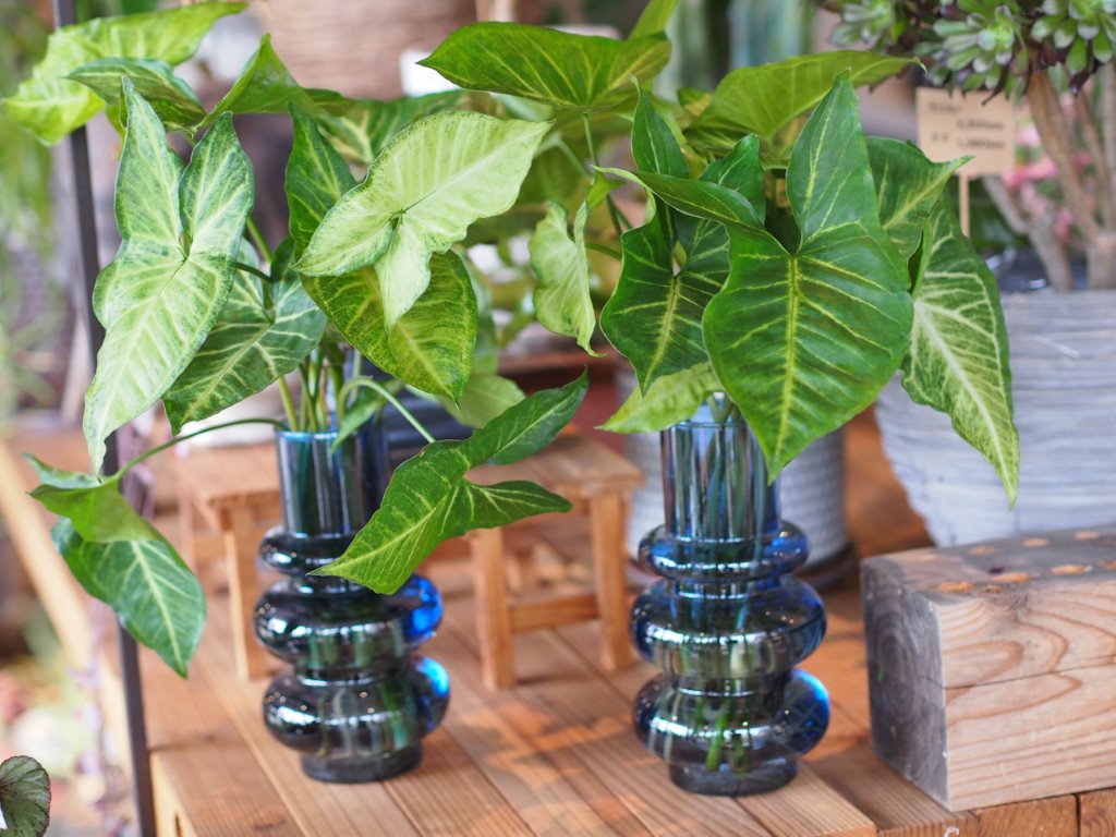 シンゴニウムは熱帯雨林を原産とするサトイモ科の観葉植物で、矢じり型やハート型の美しい葉が特徴です。