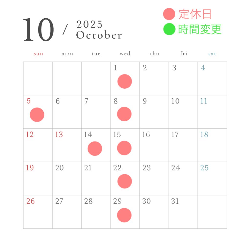 10月の営業日のご案内です。